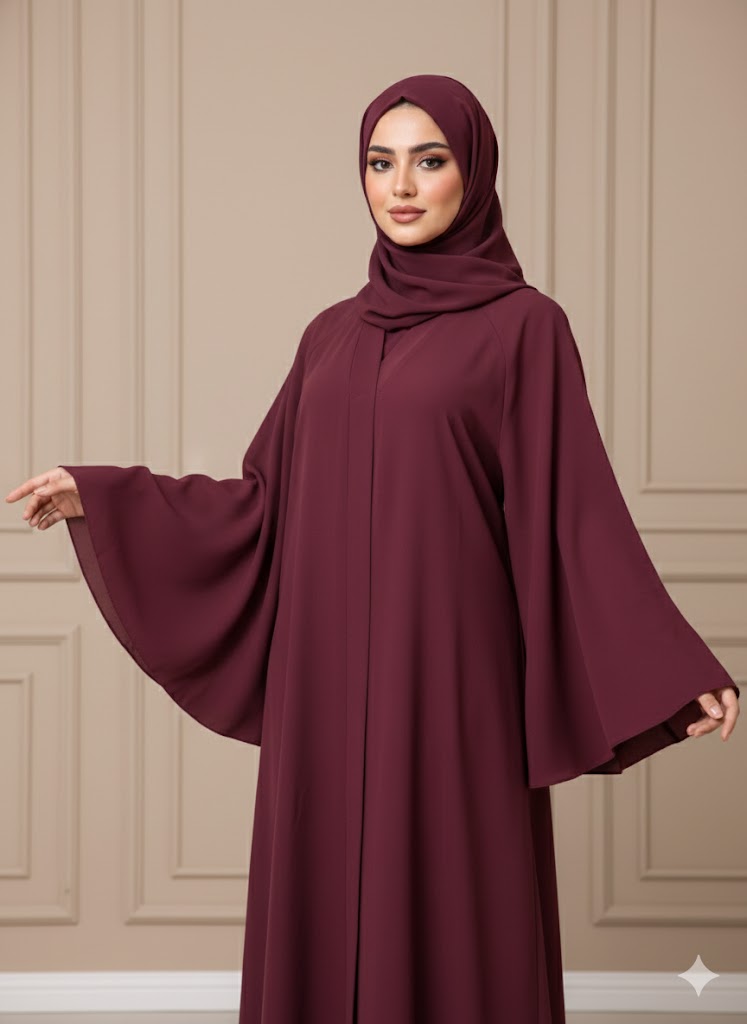 عباية كلوش مصممة باليد العريضة التي تمنحك حضورًا راقيًا ولمسة أنثوية جذابة، مصنوعة من قماش الكريب المعروف بخفته، انسيابيته، وثباته. مثالية لإطلالة يومية أو راقية في المناسبات.