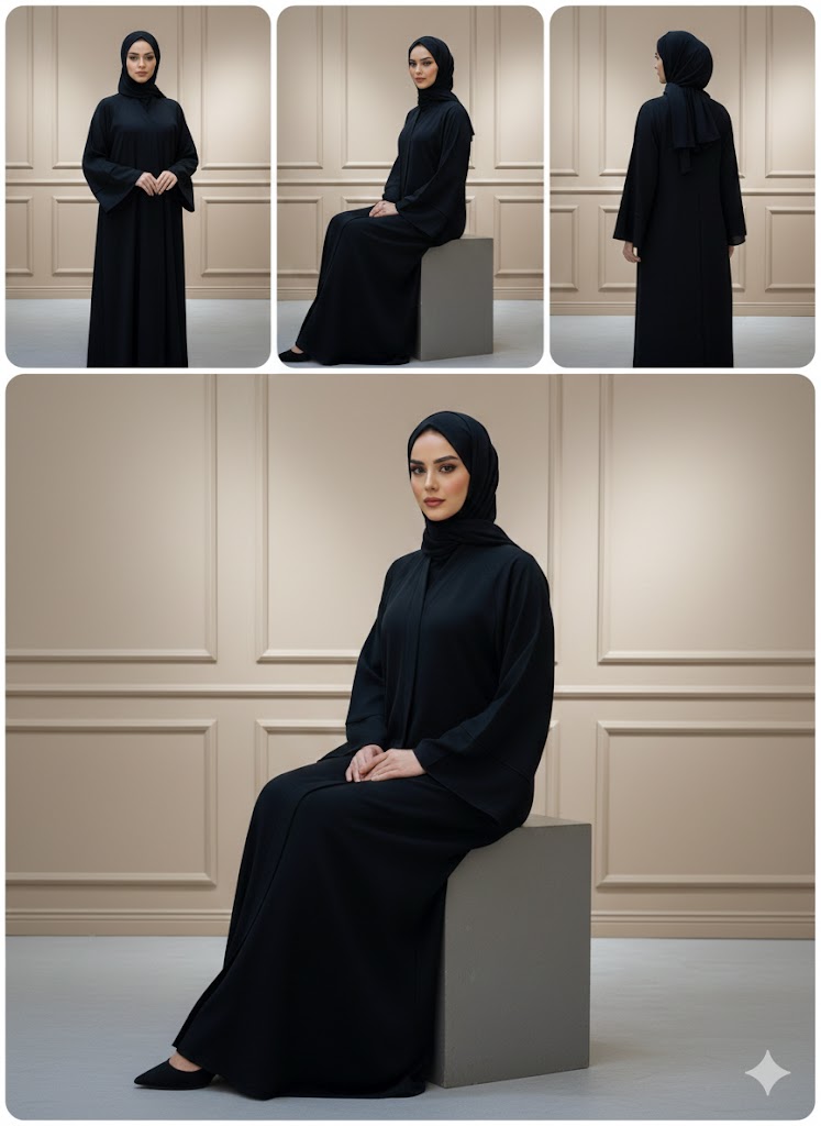 قماش كريب عالي الجودة: خفيف، انسيابي، ومتوازن بين الراحة والفخامة.