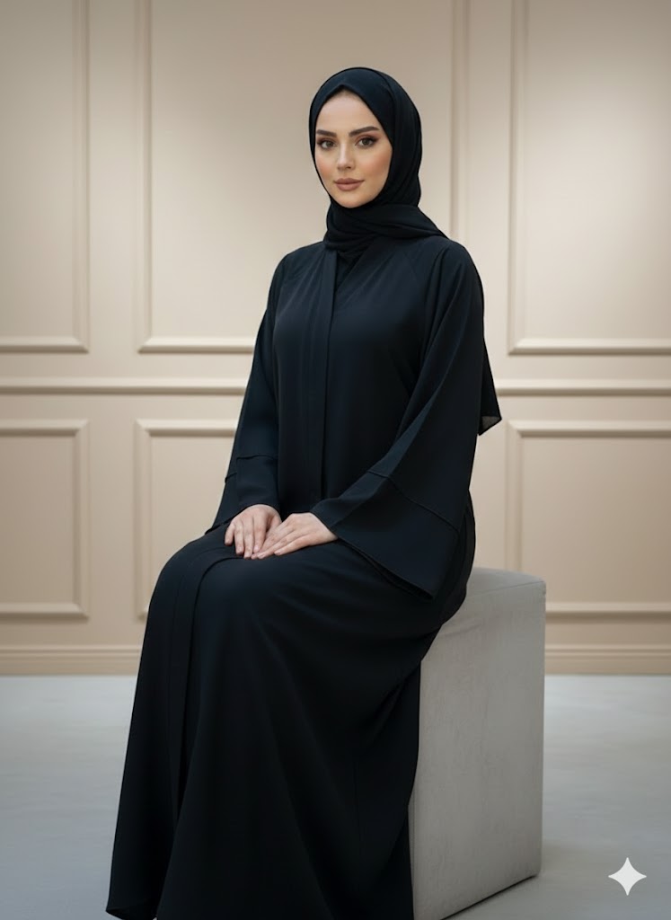 عباية كلوش مصممة بيد مدوبلة تمنحك ثباتًا وأناقة إضافية، مصنوعة من قماش الكريب المعروف بنقاوته، انسيابيته، وملمسه الفاخر. مناسبة لكل سيدة تبحث عن إطلالة كلاسيكية بلمسة عصرية جذابة.