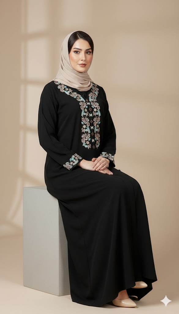 قماش كريب فاخر: خفيف، مريح، ويتحمل اللبس الطويل دون تجعدات.