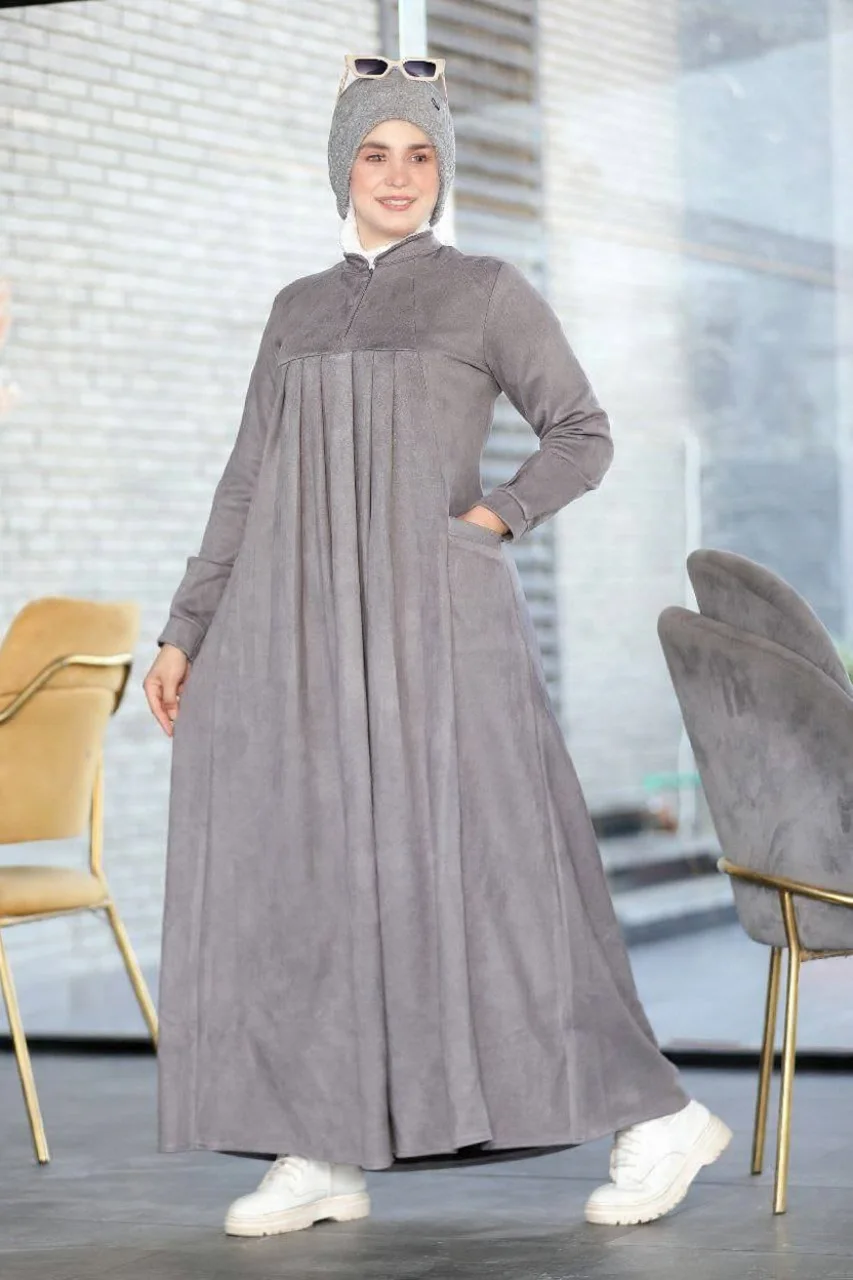 تم تصنيع الكسوة من قماش فودان عالي الجودة المعروف بقدرته الممتازة على حفظ الحرارة، مما يجعلك تشعرين بالدفء دون الشعور بالثقل. كما تتميز بقصّة مريحة وانسيابية تناسب مختلف أشكال الجسم وتمنح حرية في الحركة.