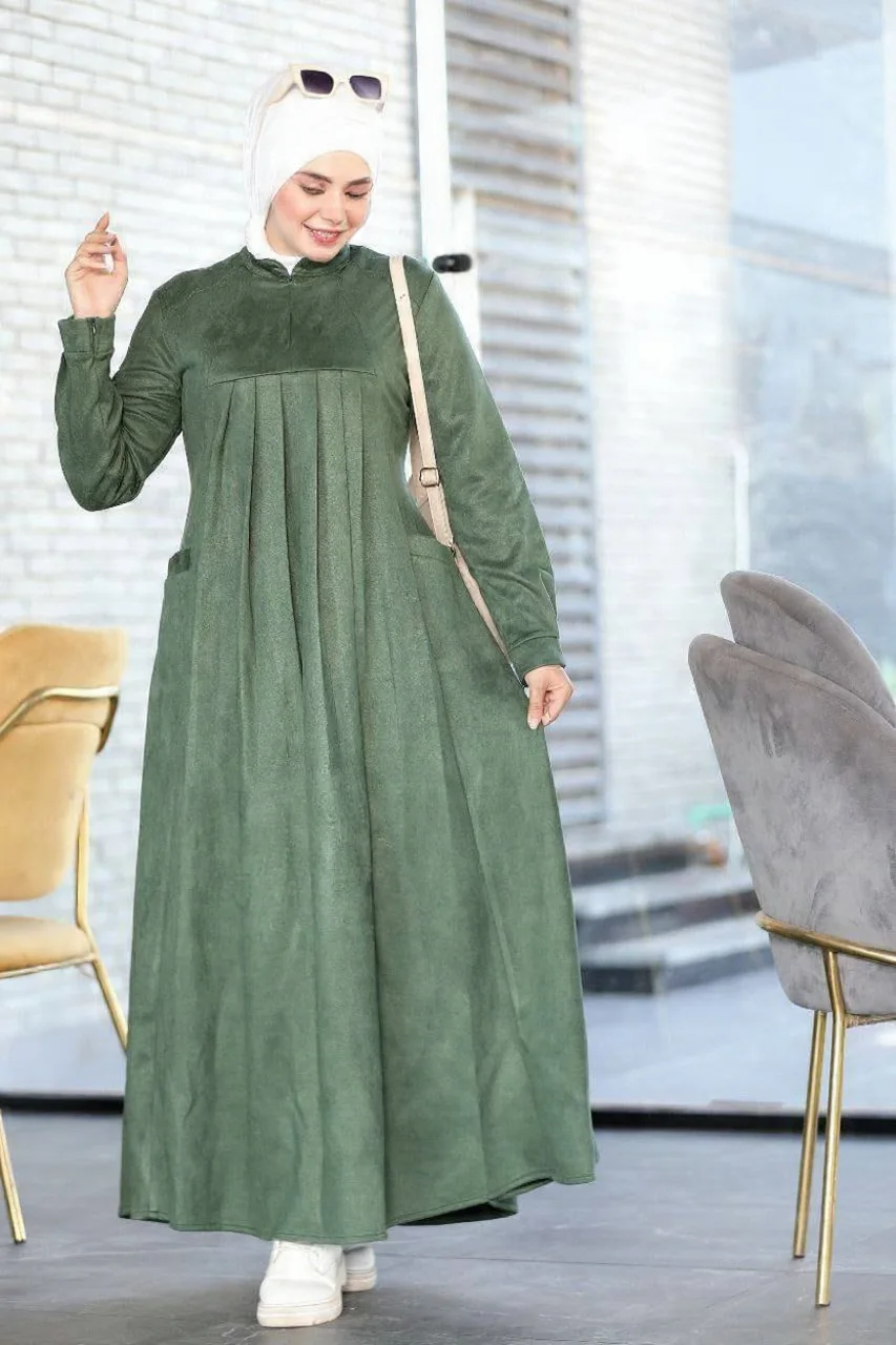 تأتي الكسوة مزوّدة بـ جيوب جانبية عملية تضيف لمسة جمالية ووظيفية في نفس الوقت، لتتمكني من حمل أغراضك الصغيرة بسهولة مثل الهاتف أو المفاتيح، دون الحاجة لحقيبة في بعض الأحيان.